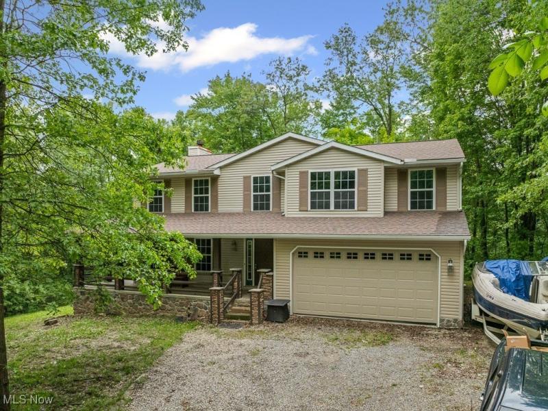 Welcome to this beautifully remodeled home, nestled on an expansive 18-acre property, offering serene country living with modern amenities! This stunning four-bedroom, two-and-a-half-bathroom home has been thoughtfully updated and is ready to welcome its new owners. As you make your way up the winding tree lined driveway you open up to the home. As you enter the first floor, you'll find a spacious family room perfect for gatherings open concept updated kitchen featuring marble countertops, and a cozy den that offers flexibility for a home office or additional living space. The main level also includes a convenient laundry room and a half bathroom that opens to a large deck, ideal for outdoor entertaining and enjoying the picturesque views of the wooded backyard. Upstairs, you'll discover four generously sized bedrooms, including a grand master suite with its own private master bathroom. A second full bathroom serves the additional bedrooms, each offering ample space. The partially finished walkout basement provides additional living and recreational space, while the unfinished portion offers plenty of storage. The home also features an 80-gallon hot water tank, installed in 2013, ensuring comfort for the whole family. Outside, a charming creek runs along the back of the property, adding to the peaceful atmosphere. With 18 acres of land, three sheds for storage, and a brand-new roof installed in 2023, this property offers endless possibilities for outdoor activities and hobbies. Don't miss the chance to own this updated home with plenty of space, both inside and out!