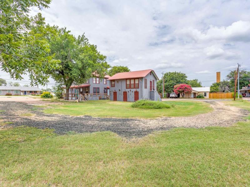 Capture the Hill Country with convenience to Fredericksburg, Austin, Blanco & More! Open the door to this Prime Mixed-Use Opportunity, two-story building on a generous lot with double ingress/egress and plentiful parking. Blend historic character with modern upgrades ideal for an investor, entrepreneur, or live/work setup. Property is Move-In Ready!! Recent improvements include new plumbing, a new tankless water heater, and a two-zone HVAC system for comfort and efficiency. The main level features a full kitchen and open, adaptable spaces suited for primary residence, retail, office, studio, or hospitality use. Offset guest bath perfectly situated. Full Sized Laundry w/Washer & Dryer. Warm beadboard paneling and original built-ins add charm and functionality. Upstairs glistening original oak floors lead to a flexible residential layout: two bedrooms, a full bath, living area, and kitchenette perfect for an owner-occupant creating work/life balance and opportunity to manifest profit. Specialty decorative touches throughout. A private balcony and exterior deck with ramp access offer added appeal. Behind the main building, a detached garage with storage and work space exude old world character & construction. While a loft-style 1BD/1BA apartment with full kitchen is currently leased for immediate rental income. The unit has its own electric water heater and a private single-car garage. *Owner Financing Options May be Available*
