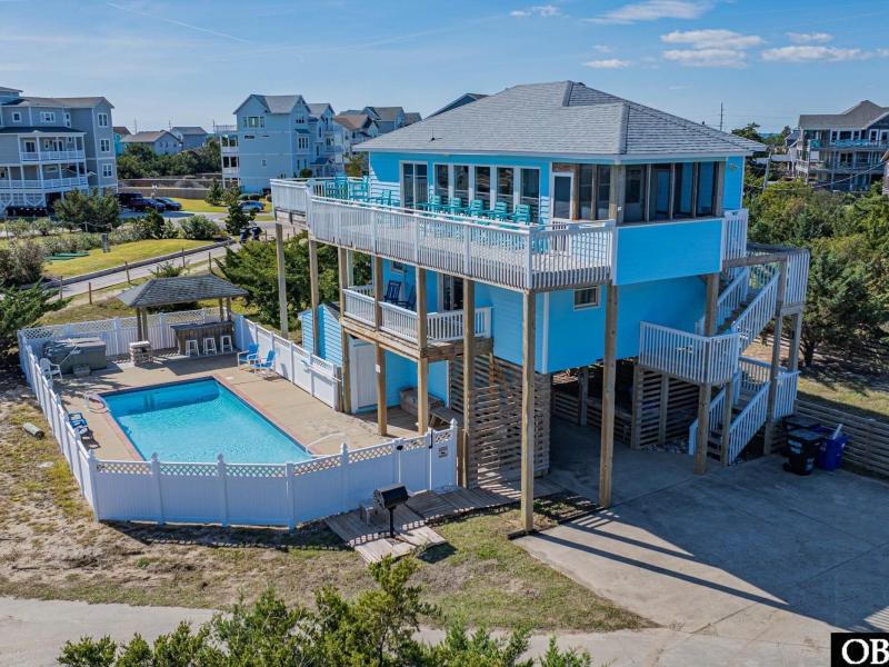 Semi-oceanfront in Salvo with ocean views, pool, and easy beach access! Welcome to Never Forget a bright and cheerful coastal retreat tucked just one lot back from the ocean in a quiet Salvo cul-de-sac. With wide, unobstructed ocean views and a sandy path straight to the beach, this spot is all about sun, salt air, and easy island living. Spend your days lounging by the private pool, soaking in the hot tub, or hanging out with friends under the covered tiki bar. The fenced pool area has plenty of space to relax, along with a charcoal grill and outdoor shower for when you wander back from the beach. There was also a brand-new fortified roof installed in October, giving you peace of mind and added protection for years to come. Inside, the fun continues with a colorful coastal vibe, vaulted ceilings, and tons of natural light. The open-concept top level features a newly updated kitchen with a custom wood island, stainless appliances, and room for everyone to gather. Step outside to the wide ocean-facing deck and take in the sound of the waves it s the perfect spot for morning coffee or an evening cocktail. There s plenty of room for everyone with four bedrooms, including an ocean-view king ensuite with a private deck, and a top-floor guest room with a fresh, remodeled bath. Downstairs, a playful game room offers extra hangout space with a daybed and full-size fridge perfect for storing snacks and drinks by the pool. You ll love the peaceful pace of Salvo, one of Hatteras Island s most laid-back beach villages. The Salvo Day Use Area is a favorite for soundside picnics, shallow-water play, and paddleboarding. Just up the road, check out the Rodanthe Pier for fishing or a sunset stroll. And when it s time to grab a bite, Good Winds and Waterman s Bar & Grill are both local favorites for fresh seafood, cold drinks, and amazing sunsets over the Pamlico Sound. Feeling adventurous? Take a kiteboarding or windsurfing lesson at REAL Watersports or Kitty Hawk Kites they re just minutes away. Never Forget isn t just beautiful it s a proven performer. With $89,030 in rental income for 2023 and $89,940 booked for 2024, it s clear this home is loved by guests and ready for a new owner to enjoy the same success. Whether you re dreaming of a full-time home, a second home getaway, or an investment with strong rental appeal, Never Forget checks every box pool, tiki bar, ocean views, and that true Salvo beach vibe.