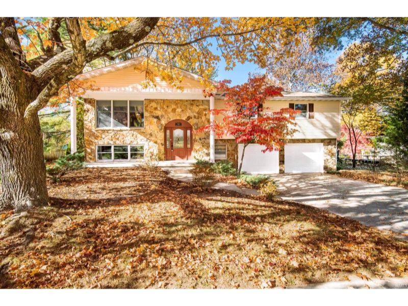 Welcome to this inviting 4-bedroom, 2.5-bath bi-level home in desirable Blue Ridge on Bloomington's north side. Situated on a .55-acre lot surrounded by mature trees and a flat, usable yard, this property offers space, comfort, and endless potential to make it your own. Step inside to discover fresh paint and new flooring on the upper level, a formal dining room, and a bright vaulted sunroom that opens to the deck overlooking the private backyard. Kitchen updates include new stainless steel appliances, generous counter space, and ample cabinetry for storage. The lower level provides a cozy family room with a masonry fireplace, built-in bookshelves, 4th bedroom, and a den or home office. Enjoy unique artistic murals and architectural details throughout, although they are easy to change. The roof and HVAC system are each under 5 years old, offering peace of mind for years to come. With excellent storage, multiple gathering spaces, and a sought-after northside location. Convenient to schools, shopping, parks, trails, Griffy Lake, Indiana University, and I-69.