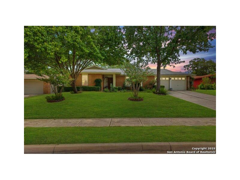 Welcome to 3230 Colony Dr - a beautifully maintained single-story home in the heart of San Antonio that blends comfort, character, and timeless charm. This 3-bedroom, 2-bath residence offers 1,591 square feet of inviting living space on a lush, tree-filled lot with incredible curb appeal. Inside, large windows fill every room with natural light, highlighting the home's open and welcoming layout. The elegant dining room features a classic chandelier and bay-window views of the front yard, while the spacious living area flows seamlessly into the kitchen and breakfast nook - perfect for everyday living or entertaining. The kitchen includes rich wood cabinetry, ample counter space, and a breakfast bar that opens to the main living area. Step outside to a peaceful backyard retreat complete with a covered patio, ceiling fan, and plenty of space to relax or dine beneath the shade of mature oak trees. The yard is beautifully landscaped with vibrant greenery, garden beds, and a cozy sitting area that creates a true sense of tranquility. Additional highlights include a two-car garage, manicured lawn, and well-maintained exterior that reflects pride of ownership throughout. Ideally located near major highways, shopping, and dining, this move-in-ready home offers the best of single-story living in one of San Antonio's most established and convenient neighborhoods.