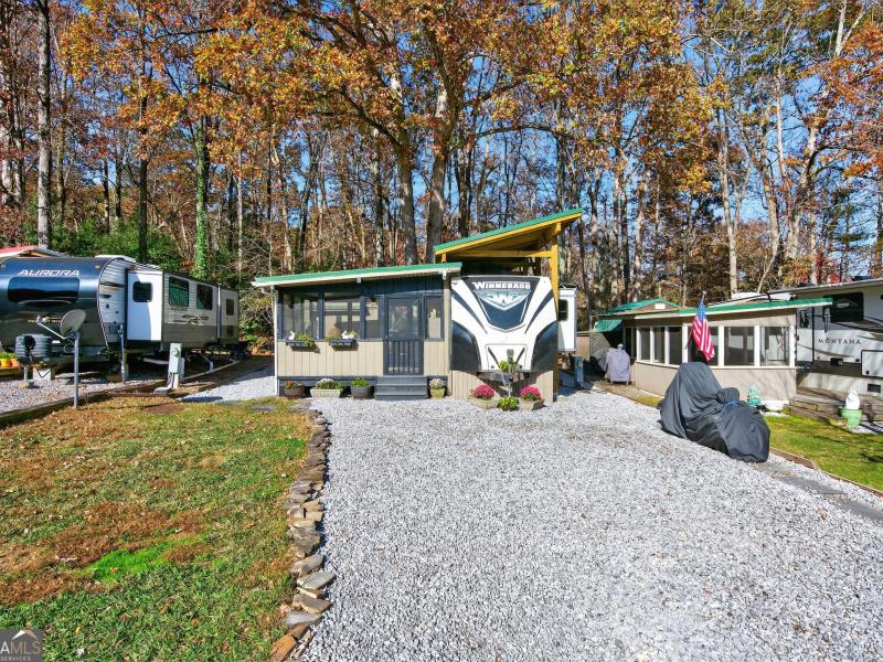 Welcome to 324 Leisure Acres Dr, an exceptional 2016 Winnebago Instinct 31RSS situated on deeded property in Leisure Acres RV Resort Community. Perfectly located near North Georgia's best wineries, hiking trails, and waterfalls, this property offers comfort, convenience, and a resort-style lifestyle. Thoughtfully upgraded for year-round enjoyment, this RV is protected by a custom timber-frame port cover with a metal roof, gel-coat fiberglass exterior, a whole-RV surge protector and vinyl-insulated skirting. Inside, this RV offers a Queen Master Suite with ample storage, including a closet system and under-bed storage. Recent upgrades include: a brand-new tankless water heater, a new AC/DC converter, a new integrated refrigerator and a new HVAC system. Smart kitchen features, like sink inserts for added prep space, enhances functionality. A charming four-seasons porch-a space so inviting you may find yourself spending more time outdoors than in. The porch opens to an extended deck and a beautifully designed patio with built-in bar railing, overlooking a peaceful valley of mature trees and foliage. Enhancing the outdoor living is a hot tub cabana complete with an awning, towel hooks, and privacy curtains-perfect for unwinding. A large storage barn adds even more convenience, featuring laundry hookups, space for an additional refrigerator, and loft storage overhead. As a resident of Leisure Acres, you'll enjoy access to impressive community amenities, including a pool, clubhouse, pickle-ball courts, a fishing pond, laundry facility, and a security gate. Whether you're looking for a full-time home or a peaceful getaway, this one is truly a must see.