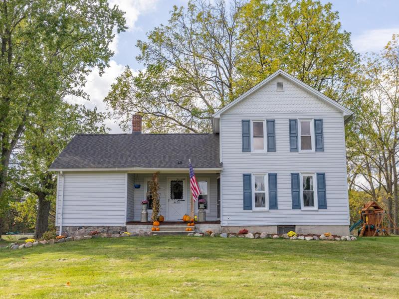 Nestled on 21.1 splittable acres of rolling countryside, this timeless farmhouse with its charming barn offers the perfect blend of history, warmth, and modern updates. The property is a working hobby farm, complete with a Christmas tree farm boasting several varieties and hundreds of trees, fertile pastureland, and a trail system that winds through dense woods at the rear-ideal for walking, riding, or enjoying phenomenal hunting. The farmhouse has been thoughtfully maintained and updated, featuring a new roof, updated electrical throughout with new breakers, and new underground power from the house to the barn. The electric was recently buried, and the barn now benefits from 60 amps of power and a new breaker panel, providing reliable energy for tools, lighting, and equipment. Additional updates include a new water filtration system and reverse osmosis at the sink. Inside, you'll find rustic country charm highlighted by wood trim and paneling, vintage wallpaper, a cozy wood stove in the family room that warms the entire home, built-ins, and a bright eat-in kitchen with stainless steel appliances including a new dishwasher. A dedicated laundry room with new washer and dryer, a spacious mud room, and a large walk-in pantry that could serve as its own room add to the home's functionality. The main level offers two bedrooms (one with an attached bath, the other currently used as an office), while the upper level includes two more bedrooms, one with a half bath, plus a spacious attic for additional storage. The large Michigan basement provides even more room to utilize. Outdoors, the property shines with multiple outbuildings including a garden shed, outhouse, additional storage shed for wood and straw, and a large historic barn with a new metal roof, three stalls, chicken brooder, LED lighting, second story, and dual workshop areas. Four raised garden beds, clover, native grasses, and cleared acreage ready for grazing, building, or future expansion enhance the farm's potential. Mature black walnut and sugar maple trees add to the natural beauty, with producing maples already marked for syrup tapping. Relax and entertain on the stamped concrete patio and walkway, while the included swing set and established walking trails make this a property to enjoy year-round. Whether you envision farming, homesteading, or simply soaking in the serene rural setting, this property offers endless opportunity, updated infrastructure, and timeless charm.