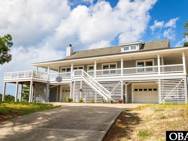 Coastal elegance meets timeless craftsmanship in Kitty Hawk, NC! This beautifully appointed, custom-built home was thoughtfully designed by its owner/builder to stand the test of time. With 5 spacious bedrooms, 3 full bathrooms, and exceptional storage throughout, it offers a rare blend of comfort, durability, and elevated coastal living. Perched on one of Kitty Hawk s highest elevations, the home boasts panoramic ocean views to the east and overlooks the 18th green of Sea Scape Golf Links to the north. Step onto the expansive wraparound deck and into a sunlit great room and chef s kitchen, the heart of the home, featuring abundant cabinetry, generous counter space, and island seating perfect for gatherings. The main level includes three bedrooms, including a primary ensuite with a walk-in closet and stunning views. Upstairs, a versatile bonus room awaits ideal as a guest room, office, library, or media space. The lower level offers a private guest suite with full bath and potential for a separate rental unit, plus a utility room, workshop, and two full-sized garage bays. Upgrades abound: a generator panel for peace of mind, a Manabloc plumbing system for efficient water control, and a 50-gallon Le Bleu water system for premium drinking water. Recent zoning updates allow for the addition of a pool or outdoor entertainment area, enhancing both lifestyle and rental income potential. Located just steps from the Sandtrap Tavern, Sea Scape clubhouse, and OBX s best beaches and eateries, this home offers a rare opportunity to enjoy coastal convenience, elevated views, and enduring quality. Schedule your private showing today this gem won t last long!