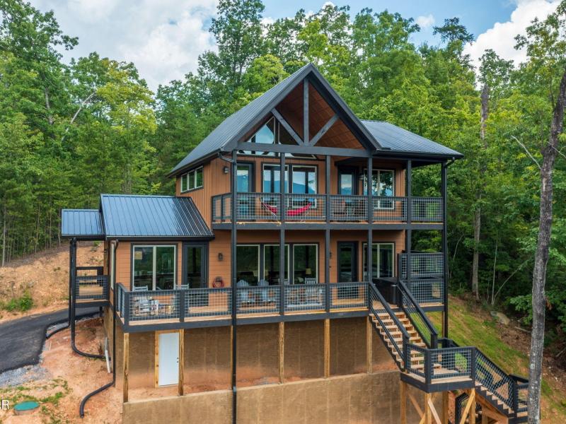 THAT VIEW!!! EXCEPTIONAL DIRECT MT. LECONTE VIEW!!! Modern-style chalet BUILT NEW IN 2024 WITH AN UNBEATABLE LOCATION & STUNNING VIEWS!!! This incredible property is a premier short-term rental opportunity. A beautiful and spacious 2-bedroom, 2-bath cabin in Gatlinburg, perfect for investors seeking the ideal getaway. The cabin boasts breathtaking, unobstructed views from every room and is impeccably maintained. Big windows throughout the cabin, incredible for scenery and natural lighting. The main floor showcases a gorgeous kitchen with an island, leathered granite countertops, a dining area with panoramic mountain views, a spacious living room with a modern fireplace, a luxurious king-sized bedroom, and a custom-tiled shower. Step onto the large, covered deck to relax in the hot tub while soaking in the scenery. Upstairs features another king-sized bedroom and bath, a generous game room/family area, and a second covered deck. Revel in uninterrupted views of the Great Smoky Mountains. Witness stunning sunrises and sunsets from either deck. This high-quality cabin is built with a solid poured foundation walls, hardy board siding, and a sleek black metal roof. Don't miss this rare opportunity-invest now!