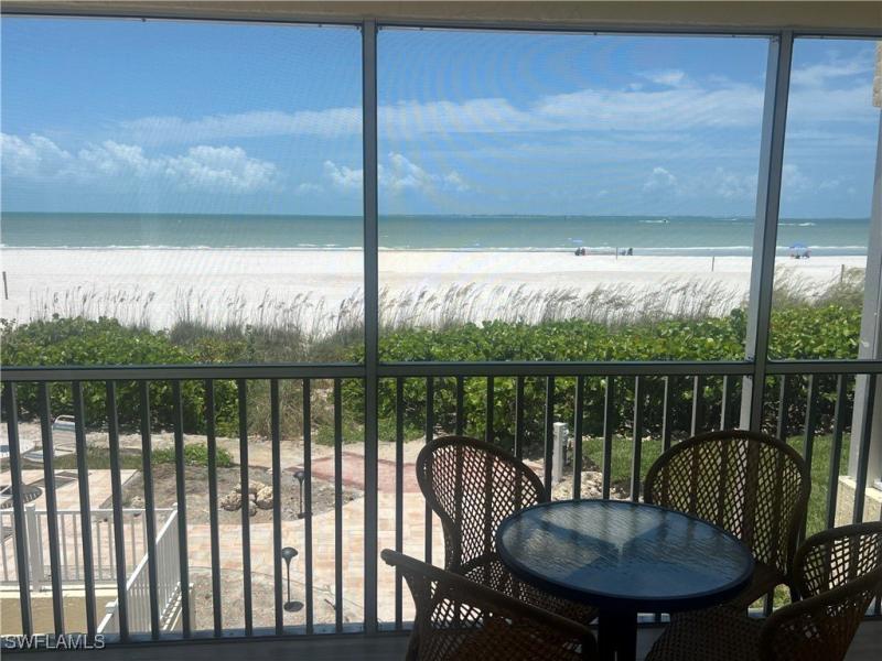 NOW OPEN for renting or beachfront living! Beautifully remodelled 2 bed/2 bath DIRECT GULF FRONT Condo with a combination of a great beach location, popular floorplan, favorable rental rules, owners are allowed pets, and complimentary membership to the Pink Shell Resort (next door). FULLY FURNISHED AND TURNKEY! This prestigious northend gulf front location offers unparalleled privacy as it is next door to Bowditch park and across the street from the bay. INVESTORS - the building allows 4 day min rentals from Thanksgiving to Easter and 7 days in the off season. The unit was completely renovated as a result of Hurricane Ian. Brand new stainless appliances just installed and full sized washer and dryer. The unit features IMPACT sliders and windows; new plumbing; new electrical breakers, breaker box, switches and GFIs; new air conditioner; newer water heater; and laundry hook ups (private laundry area in unit). New wood-look TILE flooring throughout. The kitchen features white shaker cabinets, quartz countertops and backsplash, and the "drop down" ceiling was removed. The two bathrooms feature white shaker vanities, quartz countertops, marble tiled showers with shampoo inserts and glass shower doors. Recessed lighting in the livingroom and bedrooms. Crown molding throughout. The corner unit is light and bright with extra windows and TWO balconies - one overlooks the beach and ocean; the other overlooks the bay and beach. This 2 bed / 2 bath unit will make a great personal residence or provide a sizable investment income. Vacation Villas Condo building has 30 units over 6 floors (5 per floor). The building has all new water plumbing, relined sewer lines, new electrical, new waterproof electirical room, refurbished pool area, new elevator, new roof, and new landscaping. Maintenance fees include high speed fiber optic internet, unit water, building insurance and professional mgmt. Vacation Villas is NOT part of the Pink Shell Resort, however, the Pink Shell has provided Private Membership of their amenities to the owners at vacation villas through March 2027 at no cost! Pink Shell Resort also provides security and beach raking to the building at no cost. Please note in the photos there is scaffolding on the lanais as the building was being painted when photos were taken. The Milestone Inspection is done and the repairs are DONE and will see the building through to the next inspection in 10 years. The owners received 70K per year pre -Ian in rental income (after all rental expenses) and this is projected to 100K in 2026. One photo is virtually staged. All Assessments PAID in FULL.