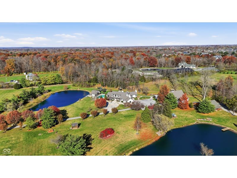 Nestled on 11 private, wooded acres in the prestigious Center Grove school district, this exceptional estate combines refined luxury with resort-style amenities. The elegant 5-bedroom, 6-bath home features rich hardwood floors and open, light-filled living areas designed for comfort and flow. A chef's kitchen anchors the heart of the home with premium appliances, expansive prep space, reverse osmosis water system, and custom finishes ideal for entertaining. Enjoy whole-home state-of-the-art audio-visual technology with built-in speakers throughout the interior and outdoors. Outdoor living shines with an inground saltwater pool, inviting pool house, and a serene 1-acre stocked pond. Relax year-round on the additional screened-in porch, complete with a cozy fireplace overlooking the peaceful wooded backdrop. For recreation and entertainment, the property boasts an impressive ~5,000 sq. ft. multi-purpose outbuilding featuring an indoor basketball court, pickleball courts, and a baseball hitting tunnel, dog wash, epoxy and stained concrete flooring. The entertainment side includes a full bar and game area with radiant floor heating and dedicated sports-viewing lounge-perfect for hosting gatherings and half bath. Electronic dog fence installed on 7 acres. Children will love the outdoor play area featuring a Noah's Ark playset. A rare opportunity offering privacy, luxury, and unmatched amenities-this extraordinary estate delivers a lifestyle beyond compare, just minutes from Center Grove's finest conveniences. And easy access to I69 for travel to downtown Indy!
