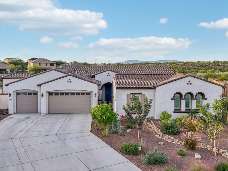 Welcome to an unparalleled living experience in the prestigious Arroyo Norte Foothills Estates, where luxury meets functionality. This exceptional single-story residence boasts over $275,000 in exquisite upgrades and sits majestically on a sprawling pie-shaped lot of more than half an acre, ensuring remarkable privacy and breathtaking vistas. Here, you'll be captivated by postcard-worthy sunsets and panoramic mountain views that define the essence of serenity. Step inside the main house to discover a thoughtfully designed layout featuring four spacious interior bedrooms, three elegant bathrooms, a dedicated den, and a versatile split multi-generational space. This home is further enhanced by an additional bedroom and bathroom in a separate entrance casita, seamlessly blending comfort with luxurious living. Perfect for large families or those seeking multi-generational accommodations, this residence invites everyone to feel at home. Venture outdoors to your brand new backyard oasis, where a magnificent extended covered travertine patio beckons for alfresco dining and entertaining. The sparkling pool and cozy fire pit create an inviting atmosphere for relaxing evenings under the stars. The separate guest casita enhances the allure with its own full bath and walk-in closet, serving as an ideal pool cabana, private office, or fitness room. Surrounding the space, meticulously maintained landscaping complements the view fencing, presenting endless possibilities for creating your dream outdoor retreat, whether it's a putting green or a tranquil outdoor fireplace. Inside, the elegance continues with ceramic wood-like flooring, custom 6-inch baseboards, and a serene neutral palette that flows throughout the open floor plan. At the heart of the home lies a gourmet kitchen, a culinary enthusiast's dream, featuring a dazzling Quartz countertops and extended island, a chic herringbone backsplash, modern shaker cabinets, and top-of-the-line stainless steel appliances. The sophisticated butler's pantry and gas cooktop provide abundant space for culinary creations, while the kitchen overlooks the great room, designed for seamless entertaining. Expansive glass wall vanishing sliders invite natural light, enhanced by custom mechanical shades that bring a touch of elegance and comfort during the summertime. Retreat to the private owner's suite, a spa-like sanctuary featuring a custom tiled shower with a glass enclosure, a dual sink vanity, and an expansive walk-in closet. Awaken each morning to stunning sunrises and majestic mountain views that set the tone for a perfect day. The split floor plan includes a guest suite encompassing a dedicated office, three additional bedrooms, two bathrooms, and a separate teen space, catering to all family needs while maintaining a sophisticated ambiance. This residence is a true testament to thoughtful design, balancing style and convenience, serving as your gateway to the vibrant lifestyle of Phoenix, with the added benefit of proximity to TSMC. This home encapsulates the space, stunning views, and luxurious lifestyle you've been longing for in the coveted Arroyo Norte Foothills community. Embrace the opportunity to make this dream home yours, where every detail has been curated for your utmost enjoyment and comfort.