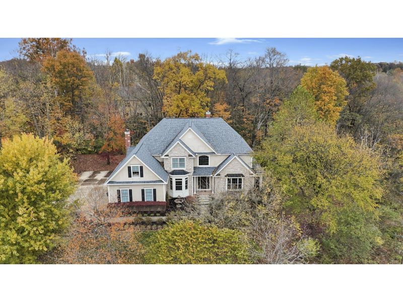 This remarkable custom-built home is situated on a private lane with views overlooking the Olentangy River Valley with ALMOST 3 ACRES!! The home features a 2-story foyer and a grand great room that includes a wrought iron-railed bridge and a prominent wall of windows. The high-end kitchen is equipped with a commercial six-burner range, double oven, a warming drawer, wine cooler, and a gourmet island with a second sink. The cherry kitchen showcases granite countertops , all designed for entertaining. This kitchen seamlessly flows into an eat-in space and a hearth room, which is enhanced by a wood-burning fireplace. The first-floor primary suite offers spacious accommodations. Stunning private owner bath. Additionally, the first floor boasts a wainscoted den and dining rooms, while the versatile second floor includes Jack-and-Jill suites, a guest suite with a private bathroom, a fifth guest bedroom (lacking a closet), and an expansive bonus room. The property also features multi-level private areas and a full poured walkout lower level that benefits from five egress windows and French doors. Elegant hardwood floors extend throughout the entire first floor and the staircases. The property includes a party-sized winding newly asphalted driveway, exceptional outdoor living spaces, and a private wooded lot with picturesque views of the Olentangy River Valley. The lower level presents unlimited potential, with plumbing roughed in for a full bathroom and kitchen, an abundance of windows, and convenient walkout access. There are laundry facilities on both the first and second floors, and all bathtubs are equipped with jet features. The residence comprises two fireplaces and a surround sound system. Recent updates include a tankless hot water tank, a basement furnace, a heat pump, a new roof (2020), and the installation of gutter guards along with widened gutters and downspouts (2025). Additional improvements to the septic system were completed in 2022, a designer