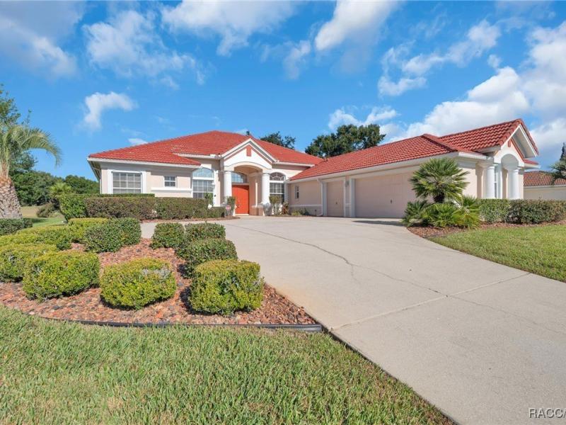 One or more photo(s) has been virtually staged. Welcome to your new home in Terra Vista! This spacious home offers a well-designed layout with ample room for everyone. Featuring Family Room, Living Room, Dining Room, Kitchen, Breakfast Nook, 3 Guest Rooms (one with a private Bath), Study/Den, Expanded Lanai, Laundry Room & a 2 Car plus Golf Cart Garage. The home provides the perfect blend of comfort and functionality. The heart of the home is the kitchen, boasting abundant cabinetry, overlooking the Family Room and extended Screened Lanai. Entertaining is a breeze with a large dining room that flows seamlessly into the Living Room, accentuated by the sliding doors leading to the lanai that overlooks the Skyview GC. Retreat to the Owner's Suite where you'll find tray ceilings, 2 huge walk-in closets, a luxurious jetted tub, a spacious walk-in shower and an oversized vanity with dual sinks. Each bedroom is thoughtfully equipped with ceiling fans and lights for added comfort. One Guest Room features a private Bath. The Study is the perfect place for those who work from home. Step outside to your tranquil outdoor space, featuring a covered lanai with screen enclosure that overlooks the serenity of a golf course setting. This peaceful oasis is ideal for relaxation and entertaining. Add your personal touches to this well maintained home... priced well below new construction costs. Why pay more for less? Don't miss the opportunity to make it yours! Schedule a visit today and envision the possibilities.