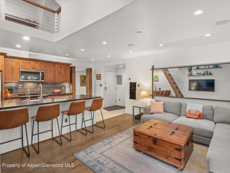 If you're looking to put down roots in Aspen with the perfect balance of convenience and tranquility, this is your chance! Located just outside the bustle of downtown, this turnkey condo offers incredible proximity to the best of Aspen. Walk or bike to world-class dining, shopping, and skiing, or hop on the free Downtowner or nearby bus for effortless access anywhere in town. With the Aspen Music Tent and BRT stop just steps away, year-round adventure and entertainment are always within reach. This top-floor, two-bedroom, one-bath home includes a versatile loft that functions perfectly as a home office or bonus sleeping area. High-end finishes and large skylights with smart design ensure every square inch feels open, stylish, and functional. A sliding glass door leads to a mature evergreen-shaded deck, offering privacy and a peaceful escape. Pet-friendly with a designated parking space and ski locker, this residence checks all the boxes. Location. Convenience. Style. This is Aspen living made easy; the ideal launchpad for enjoying everything the Roaring Fork Valley has to offer.