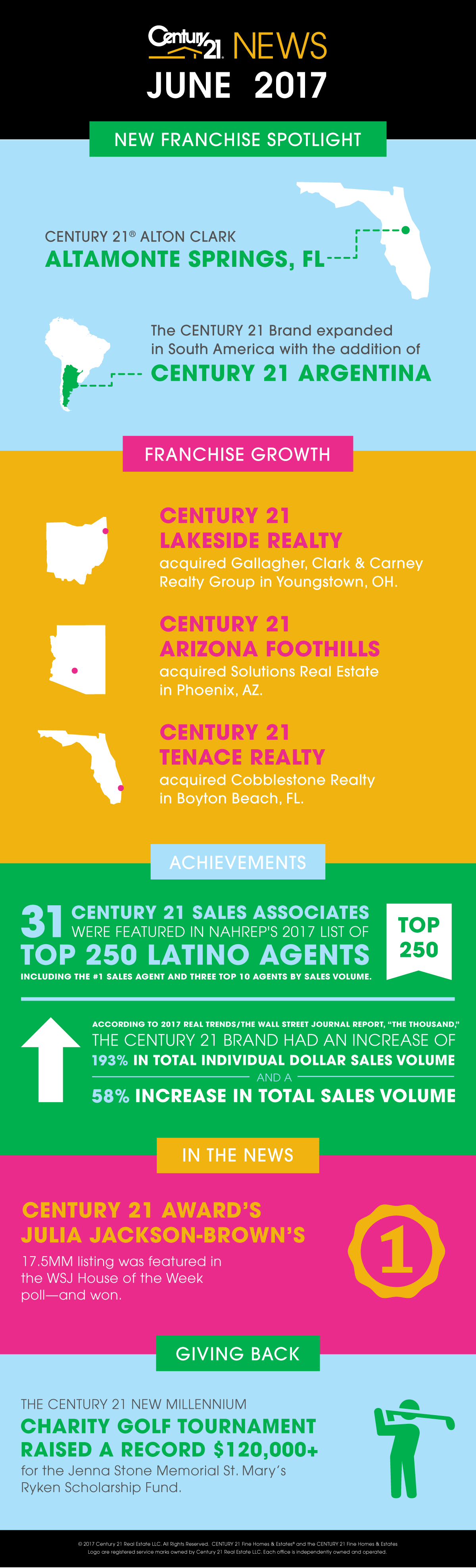 The CENTURY 21 Brand expanded in South America with the addition of CENTURY 21 Argentina. With the agreement to open CENTURY 21 franchises in Argentina with CENTURY 21 South America, Roberto S. Vivaldo of Master National Argentina S.A. will serve as President of CENTURY 21 Argentina. He plans a grand opening in September 2017 in La Plata. Master franchisees of CENTURY 21 South America currently operate approximately 200 franchised CENTURY 21 offices throughout South America, with locations in Brazil, Bolivia, Colombia, Peru, Uruguay, and Venezuela. Read more here.