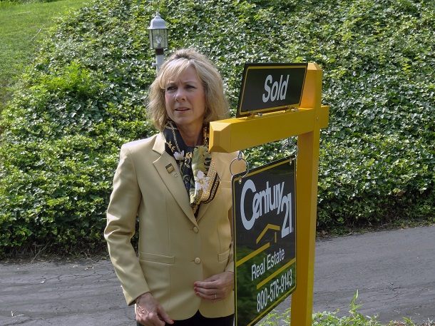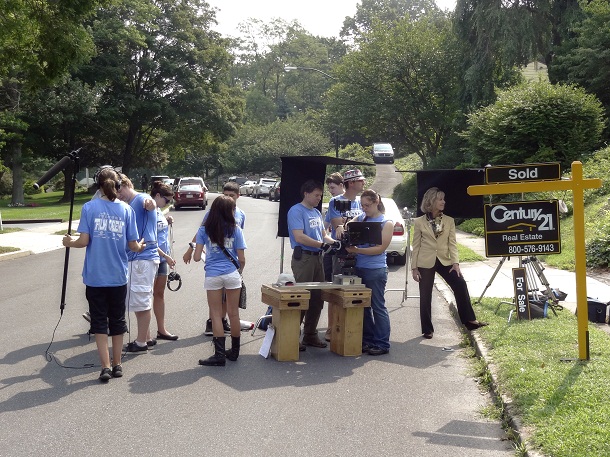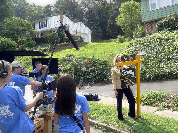 In the film, the CENTURY 21 agent is played by one of our real life System members, Rebecca Malek from CENTURY 21 Alliance in Newtown, PA. Here is Rebecca on set in Wyndmoor, PA, sporting the signature gold jacket (keep in mind, the film is set in 1981).