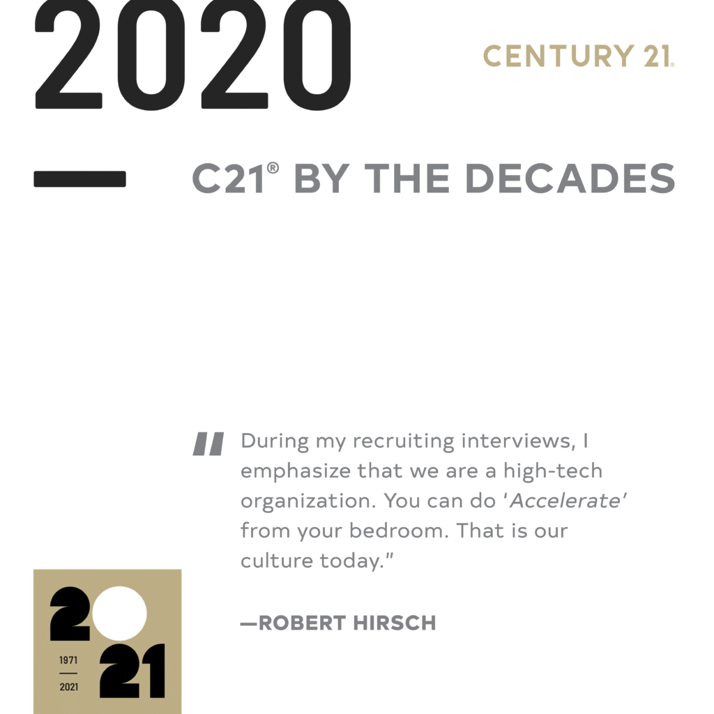 “C21 is cutting edge and I press this in recruiting meetings. I tell potential recruits that we are a high-tech organization. I mean, you can access our tools, courses and, technology from your bedroom. That is our culture today. It’s become a selling point in how new agents will be able to leverage C21 technology right from where they are.”